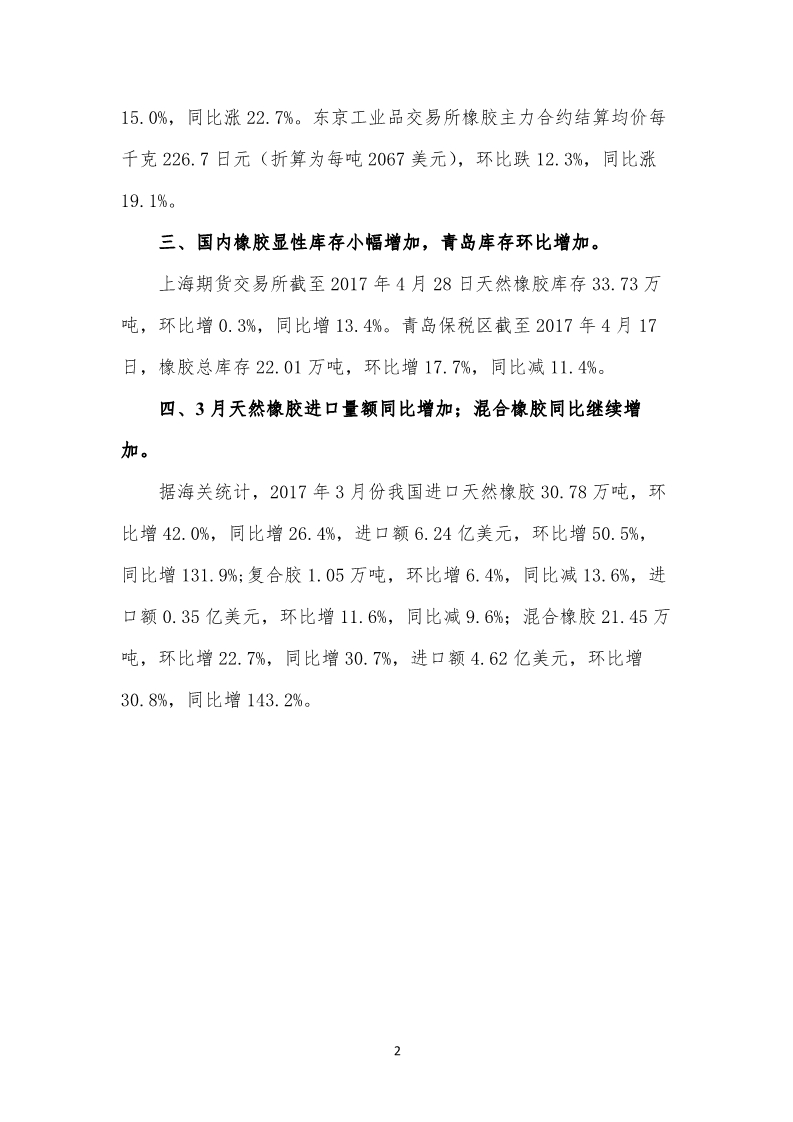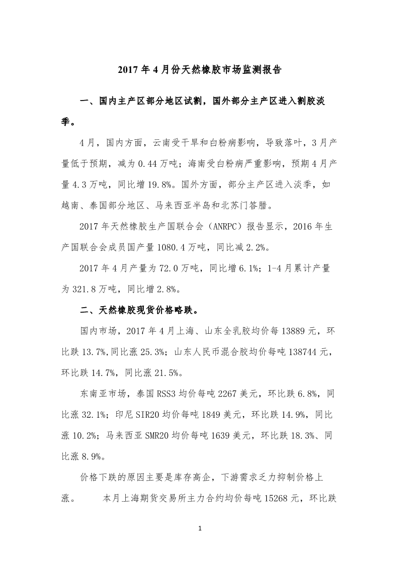 2017年4月份天然橡膠市場(chǎng)監(jiān)測(cè)報(bào)告