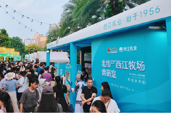 北緯23°西江牧場食研室展位以天空藍、牛奶甜,奶茶鮮和咖啡香,吸引了無數(shù)人圍觀、打卡和交流,西江乳業(yè)的高質(zhì)量乳品贏得來自各地的游客朋友和新茶飲品牌的高度認可,現(xiàn)場奶茶、咖啡和冰淇淋營業(yè)額達10萬+。