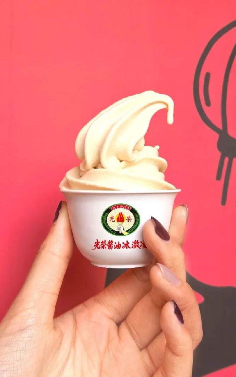 “光榮醬油”冰激凌是利民公司與食品研究院突破老字號傳統(tǒng)應(yīng)用場景的創(chuàng)新嘗試。創(chuàng)意地將光榮醬油的鮮咸醇香與冰激凌的冰涼綿密進行融合,打造出兼具傳統(tǒng)釀造底蘊與現(xiàn)代口感的特色美味。百年釀造技藝凝練的醬香,巧妙中和冰激凌的甜膩,入口層次豐富,既承載著一代代天津人的味覺記憶,又以新潮方式贏得年輕消費群體青睞,成為連接傳統(tǒng)與潮流的味覺紐帶。