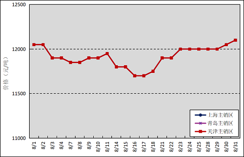 國內主銷區(qū):8月,國產全乳標準膠上海市場平均價格11915元/噸,環(huán)比下跌175元/噸,最高價為12100元/噸,最低價為11700元/噸;青島市場平均價格11915元/噸,環(huán)比下跌175元/噸,最高價為12100元/噸,最低價為11700元/噸;天津市場平均價格11915元/噸,環(huán)比下跌175元/噸,最高價為12100元/噸,最低價為11700元/噸。