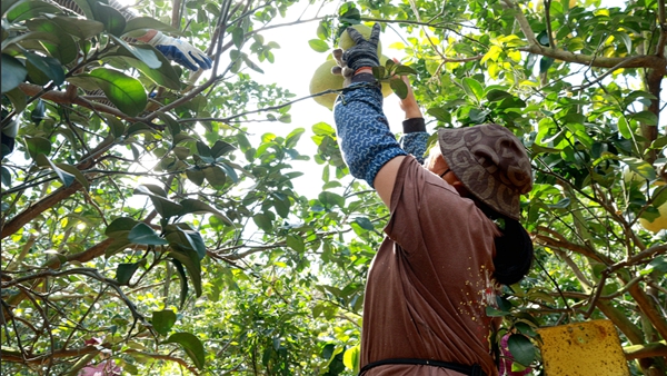 基地負責(zé)人陳業(yè)軍表示,自己是一名退伍老兵,2015年退休以后,發(fā)現(xiàn)種植沙田柚,能夠帶動家鄉(xiāng)父老走上致富道路,然后就在家鄉(xiāng)租了80畝地,開啟試種沙田柚,到今年是第十個年頭了。如今,這片高產(chǎn)優(yōu)質(zhì)的沙田柚種植基地不僅成為當(dāng)?shù)剞r(nóng)業(yè)發(fā)展的亮眼名片,更帶動了周邊20多戶村民增收致富。不少村民被豐收景象吸引,主動加入種植行列,在基地的指導(dǎo)下學(xué)習(xí)科學(xué)種植技術(shù),共享產(chǎn)業(yè)發(fā)展紅利。