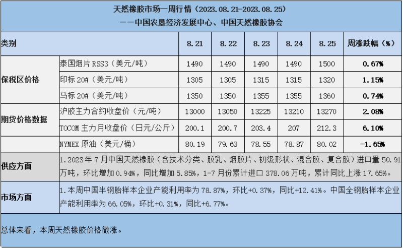 天然橡膠、大豆、玉米市場(chǎng)一周行情(2023.08.21-08.25)