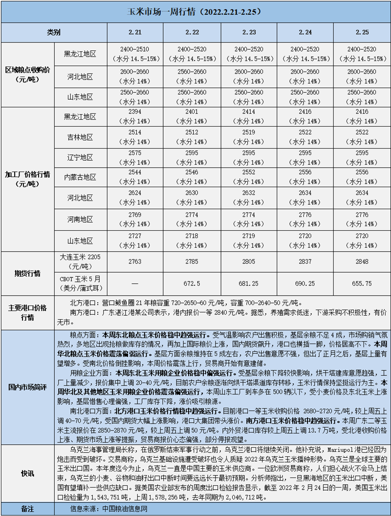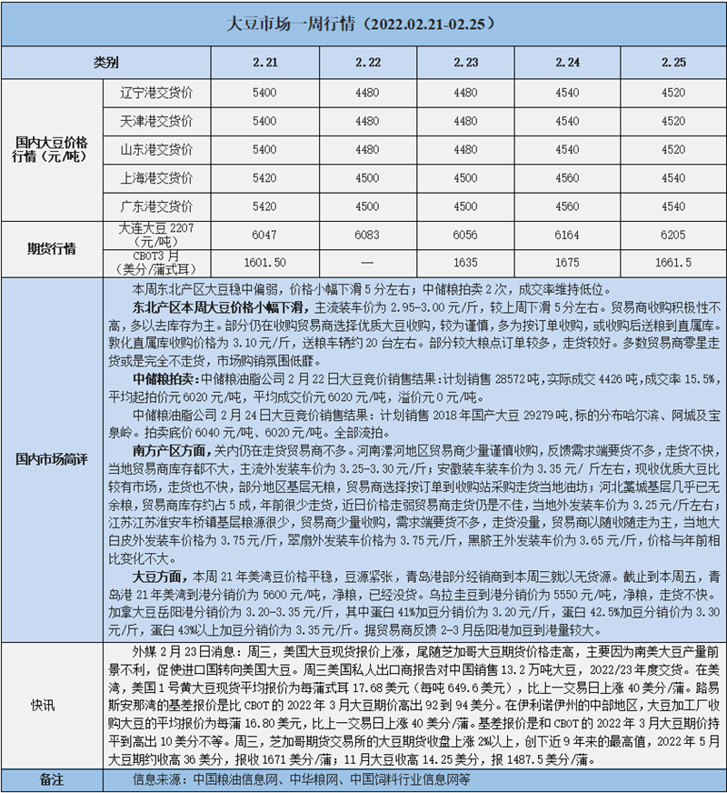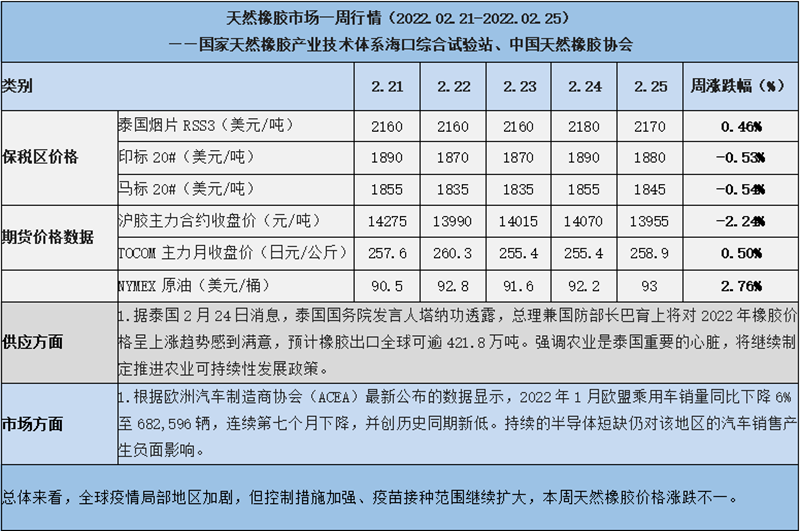 天然橡膠、大豆、玉米市場一周行情(2022.02.21-02.25)