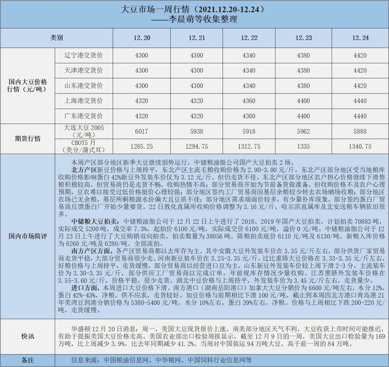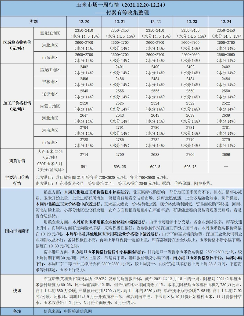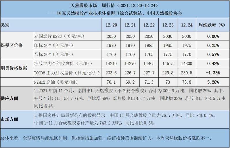 天然橡膠、大豆、玉米市場一周行情(2021.12.20-12.24)