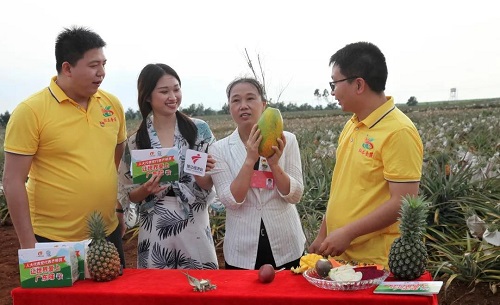 直播間搭建在一望無垠的菠蘿地里,菠蘿、芒果、火龍果、百香果、木瓜、稻米、雜糧、山茶油、花生油……各種優(yōu)質(zhì)特色農(nóng)產(chǎn)品通過鏡頭,近距離地呈現(xiàn)在廣大網(wǎng)友面前。