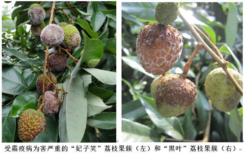 荔枝霜疫?。óa(chǎn)區(qū)也稱霜疫霉病或霜霉病)是我國除海南外其它主產(chǎn)區(qū)的最主要病害,在荔枝果實轉(zhuǎn)色至成熟采摘階段,如遇雨天最易發(fā)生流行,可造成大量的荔枝果實腐爛、脫落(見下圖)。近期,廣西、珠三角及以北地區(qū)出現(xiàn)新一輪強降水,荔枝病蟲害監(jiān)測站調(diào)查發(fā)現(xiàn),荔枝霜疫病在各產(chǎn)區(qū)不同程度發(fā)生,少數(shù)果園病果率在15%以上。據(jù)中國天氣網(wǎng)最新預報:未來10天,我國江南、華南、西南地區(qū)東部及江漢等地降雨量將達到50—100毫米,部分地區(qū)達到120—180毫米,局地超過250毫米,降雨量較常年同期偏多3—6成。這將加重荔枝霜疫病的發(fā)生與流行。對此,專家建議荔枝主產(chǎn)區(qū)監(jiān)測站和生產(chǎn)管理部門應密切關注本地區(qū)天氣變化,加強監(jiān)測與應對,指導荔枝種植者做好防控工作。