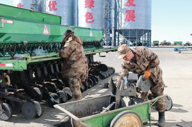 各連隊(duì)積極行動(dòng),創(chuàng)新舉措頻出。第一連(隊(duì))聚焦技術(shù)革新,計(jì)劃完成4項(xiàng)設(shè)備技改項(xiàng)目,涵蓋了精量播種、覆土效率等多個(gè)方面,通過(guò)對(duì)農(nóng)機(jī)具的改良升級(jí),進(jìn)一步提升春耕作業(yè)的效率與質(zhì)量,有效降低作業(yè)損耗,提高作業(yè)標(biāo)準(zhǔn)。第二連(隊(duì))隊(duì)長(zhǎng)張金浩介紹道:“連隊(duì)目前已儲(chǔ)備化肥590噸,剩余70噸即將到位,完成儲(chǔ)備進(jìn)度的90%。春耕機(jī)械設(shè)備檢修30余臺(tái),基本完成檢修工作,確保農(nóng)機(jī)以最佳技術(shù)狀態(tài)投入春播生產(chǎn)。連隊(duì)以自治區(qū)堅(jiān)強(qiáng)堡壘支部為依托,推動(dòng)黨建與實(shí)際工作深度融合,發(fā)揮黨員先鋒模范帶頭作用,叫響‘不畏嚴(yán)寒,奮戰(zhàn)春耕’的口號(hào),全力保障備耕任務(wù)高標(biāo)準(zhǔn)完成。”