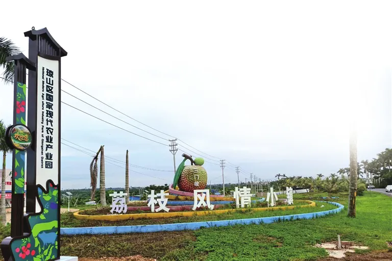 從海口出發(fā),沿223國道一路南行,在一片一眼望不到邊的荔枝園旁,一顆碩大的“荔枝”闖入眼簾,旁邊“荔枝風(fēng)情小鎮(zhèn)”幾個(gè)大字,讓人馬上意識(shí)到已抵達(dá)三門坡鎮(zhèn)。