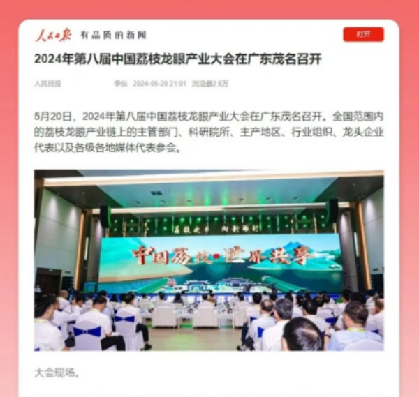 6.2024年5月,中心聯(lián)合有關單位在廣東省茂名市成功舉辦第八屆中國荔枝龍眼產(chǎn)業(yè)大會,大會以“荔枝之鄉(xiāng) 向新而行”為主題,舉辦了荔枝產(chǎn)業(yè)聯(lián)盟換屆、科技成果推介、產(chǎn)業(yè)報告發(fā)布、項目簽約等系列活動。大會有關情況被《人民日報》、新華社等媒體報道。