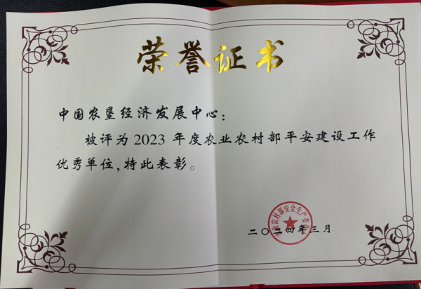 8.中心獲得2023年度農(nóng)業(yè)農(nóng)村部平安建設工作優(yōu)秀單位榮譽稱號。