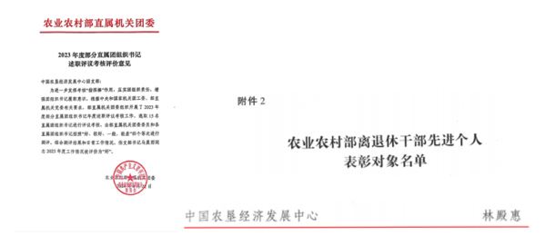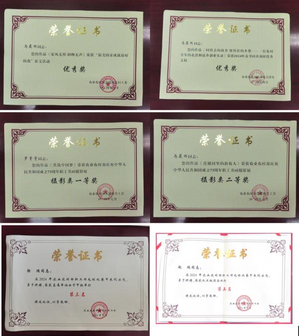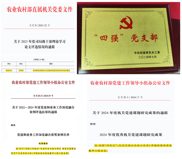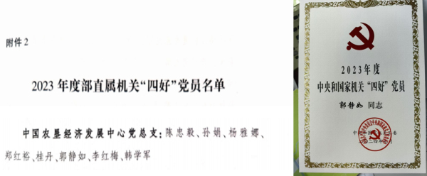 11.中心黨員干部持續(xù)加強黨性鍛煉,創(chuàng)優(yōu)爭先,獲得表彰9人次。郭靜如同志獲2023年度中央和國家機關“四好”黨員稱號,陳忠毅、孫娟、楊雅娜、鄭紅裕、桂丹、郭靜如、李紅梅、韓學軍等同志獲得2023年度農(nóng)業(yè)農(nóng)村部直屬機關“四好”黨員稱號。