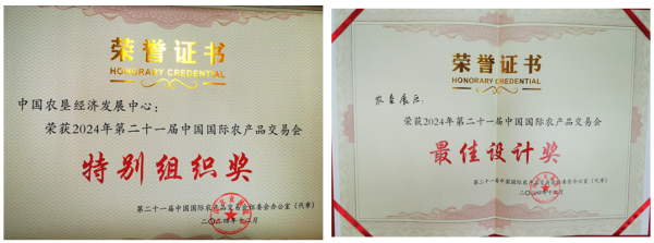 7.2024年11月,中心組織農(nóng)墾企業(yè)參加第二十一屆中國國際農(nóng)產(chǎn)品交易會,中國農(nóng)墾品牌發(fā)布推介活動被微觀三農(nóng)等媒體宣傳報道,中心獲得組委會“特別組織獎”,農(nóng)墾展區(qū)獲得組委會“最佳設計獎”。