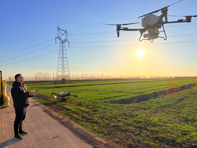 飛手李師傅的手機(jī)屏幕上,“農(nóng)業(yè)管理平臺(tái)”APP實(shí)時(shí)跳動(dòng)著關(guān)鍵數(shù)據(jù),他輕觸“參數(shù)調(diào)整”,無(wú)人機(jī)便根據(jù)麥田地形和麥苗生長(zhǎng)情況,自動(dòng)調(diào)整噴灑量和飛行高度,確保肥料均勻覆蓋。據(jù)了解,一架無(wú)人機(jī)日均作業(yè)效率是傳統(tǒng)機(jī)械的5倍以上,縮短作業(yè)周期的同時(shí)可降低人工成本,有效提升冬小麥管理效率。
