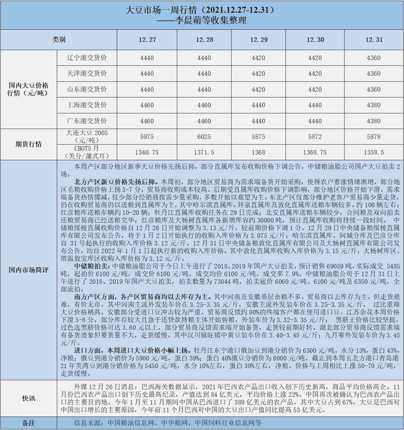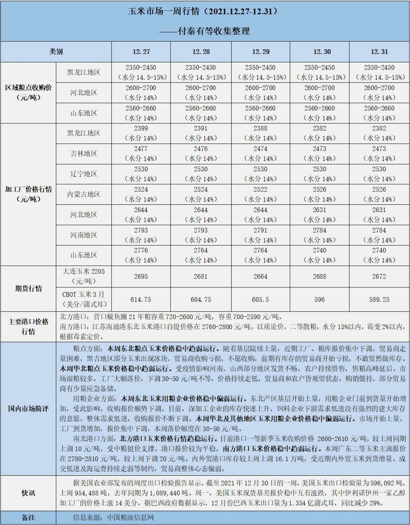 天然橡膠、大豆、玉米市場(chǎng)一周行情(2021.12.27-12.31)