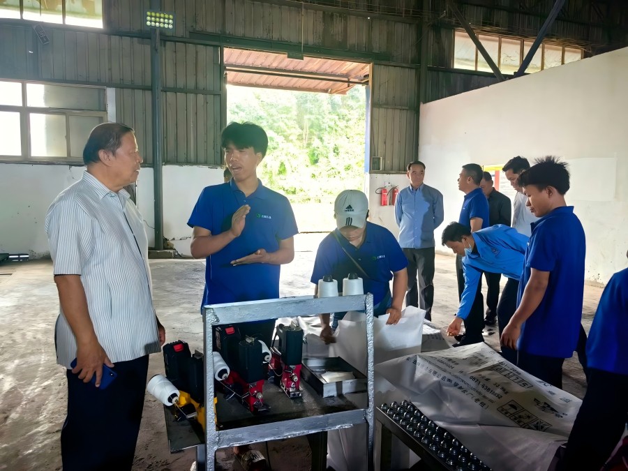 本通·波洪一行深入南塔制膠廠原料庫、生產(chǎn)車間、倉庫、環(huán)保設(shè)施等,詳細(xì)了解原料收購、制膠生產(chǎn)流程、橡膠質(zhì)量標(biāo)準(zhǔn)等情況。在聽取公司生產(chǎn)經(jīng)營、項目投資、橡膠種植等情況匯報后,本通·波洪對公司在老撾發(fā)展取得的成績給予了高度評價。