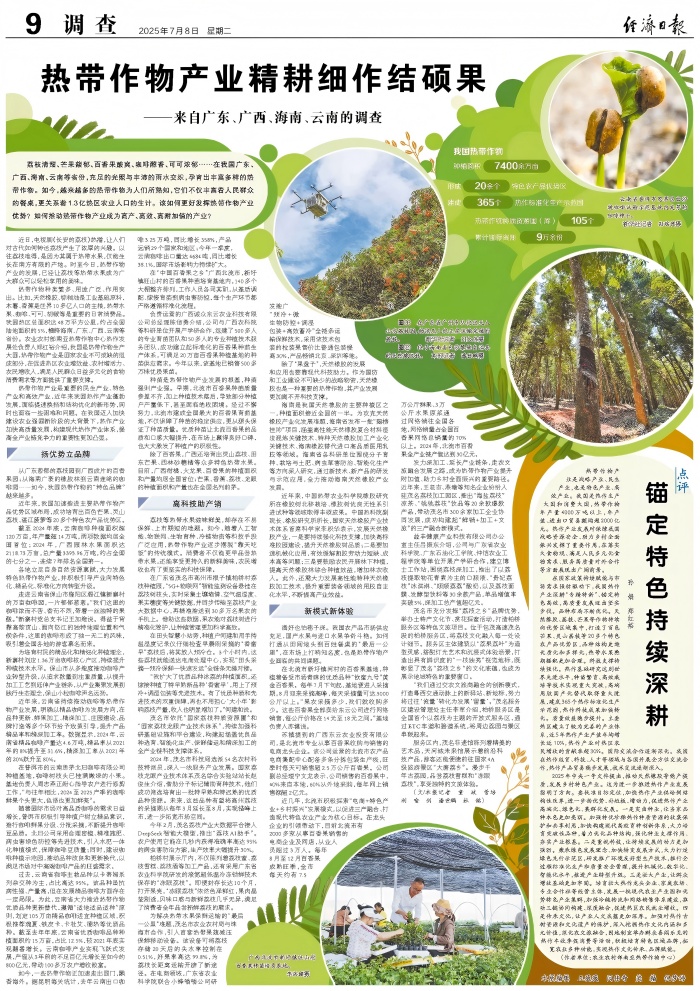 從廣東蔥郁的荔枝園到廣西成片的百香果園;從海南廣袤的橡膠林到云南連綿的咖啡園……如今,我國熱帶作物的“特色品牌”越來越多。