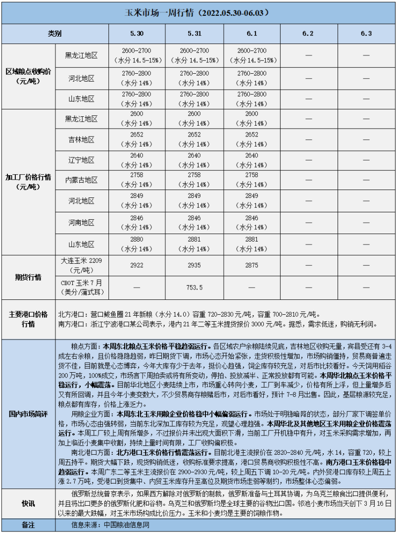 天然橡膠、大豆、玉米市場(chǎng)一周行情(2022.05.30-06.03)