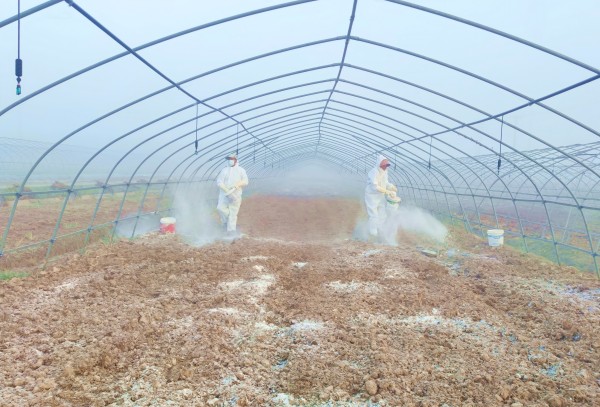 金秋時(shí)節(jié),走進(jìn)淮海農(nóng)場(chǎng)食用菌產(chǎn)業(yè)園區(qū),一座座大棚連成一片,十幾名園區(qū)職工有的在拋撒有機(jī)肥,做好土壤培肥;有的在拋撒石灰,做好土壤消殺滅菌;有的在扦插鋼架、加固構(gòu)件;也有的在開(kāi)棚間墑溝,做好排水降漬工作。大棚專(zhuān)業(yè)的小型機(jī)械正在沒(méi)有覆蓋大棚的棚內(nèi)進(jìn)行旋耕拌肥作業(yè),現(xiàn)場(chǎng)是一派忙碌景象。