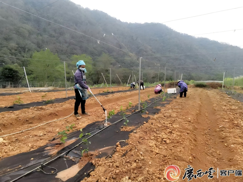 連日來,隨著氣溫回暖,西林縣仁鼎農(nóng)業(yè)“欽果9號”百香果示范基地進入春耕種植的關鍵期。在基地現(xiàn)場,經(jīng)過整理的土地整齊連片,數(shù)十名工人正分工協(xié)作,有序進行苗木搬運、挖坑定植、澆水施肥、搭建果架等工作,田間地頭呈現(xiàn)出一派忙碌景象。