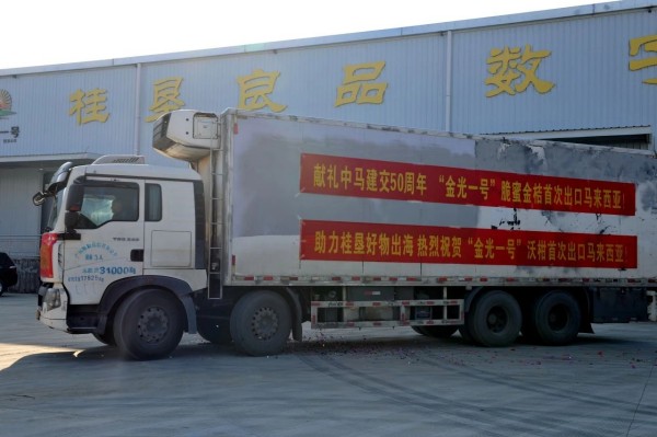12月25日上午9時,金光農(nóng)場公司“金光一號”脆蜜金桔、沃柑首次出口馬來西亞發(fā)車儀式在果蔬采后處理中心舉行。這是金光農(nóng)場公司加快“桂品出?!钡挠忠挥辛εe措,再度開辟了廣西農(nóng)墾集團(tuán)旗下名優(yōu)特農(nóng)產(chǎn)品走向東盟國家的新市場。