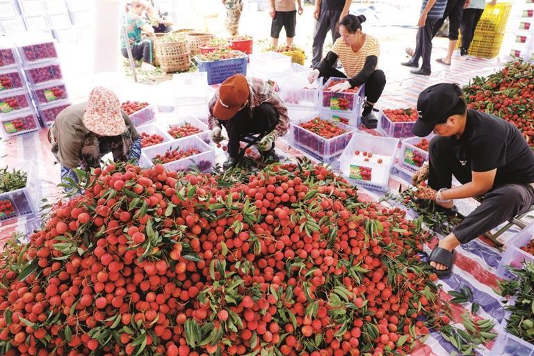 近日,柳城縣東泉鎮(zhèn)大樟村劉家屯荔枝喜獲豐收。前來(lái)收購(gòu)荔枝的柳州市區(qū)商人莫茂豐介紹,當(dāng)?shù)毓灿?0戶果農(nóng)供貨,自己第一天就采購(gòu)了7噸荔枝,通過(guò)分揀后發(fā)往北京、鄭州、西安、紹興等地。