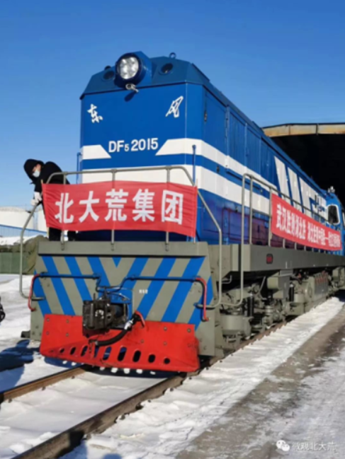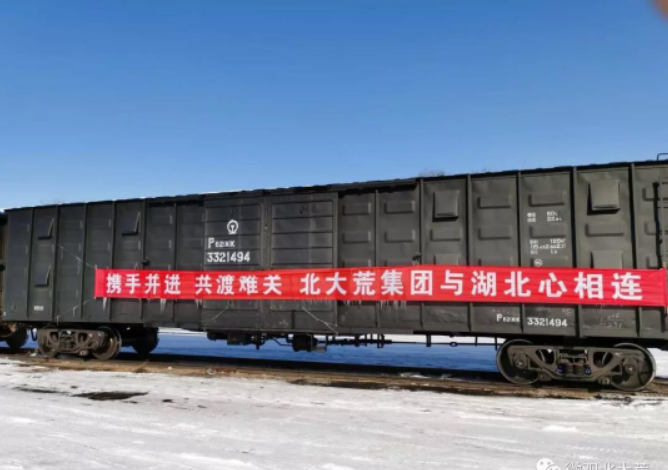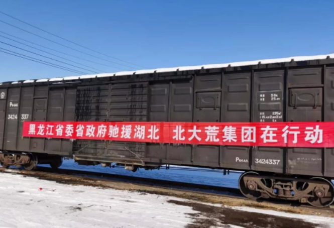經(jīng)過36小時晝夜奮戰(zhàn),這輛載有1500噸北大荒大米的列車將星夜馳援奔赴湖北,預計于48小時后抵達。