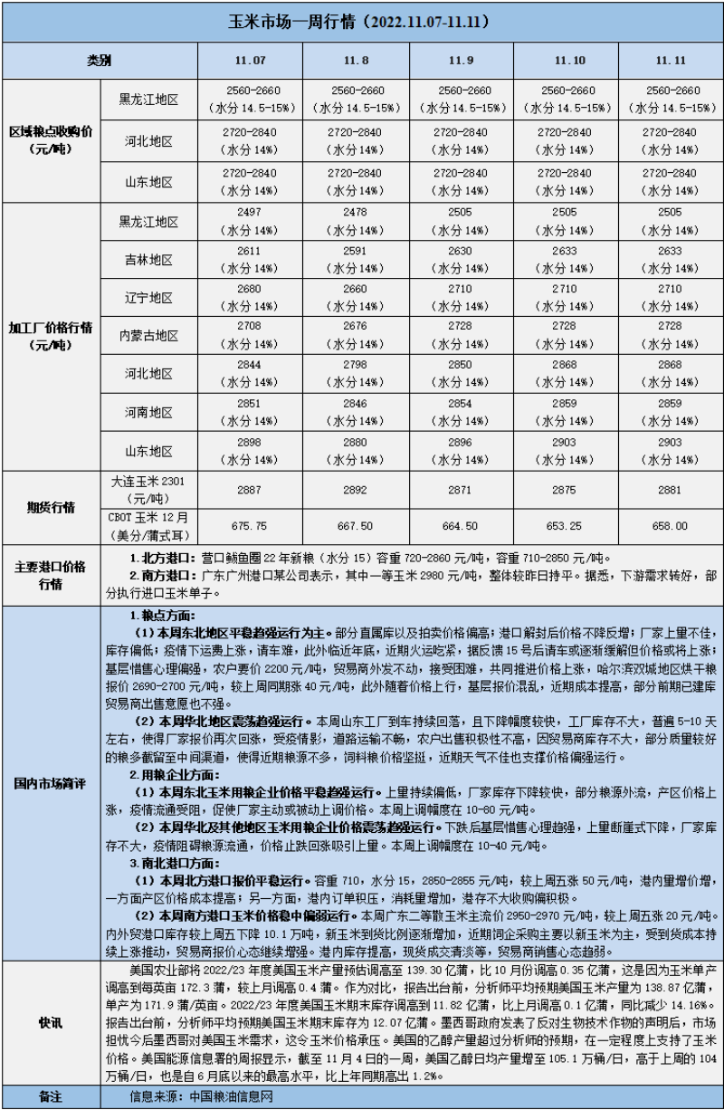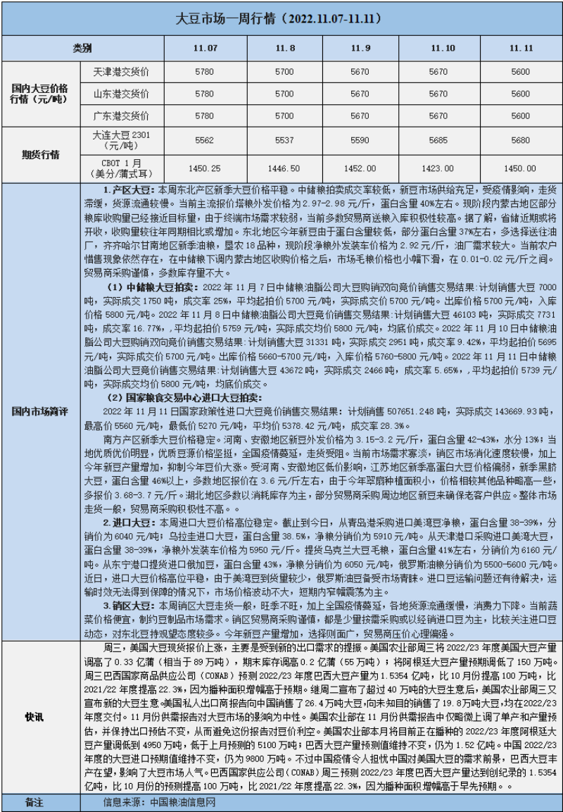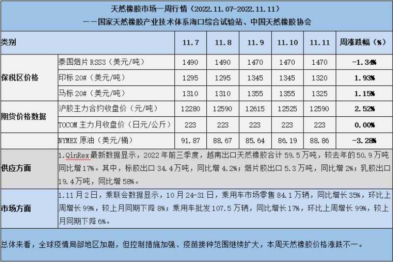 天然橡膠、大豆、玉米市場一周行情(2022.11.07-11.11)