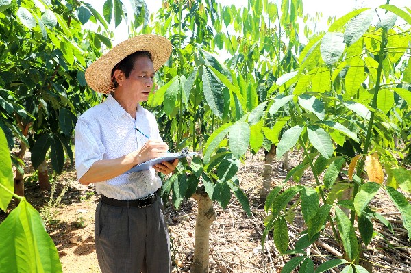 黃華孫:橡膠樹(shù)育種周期長(zhǎng)達(dá) 40 多年,我們很多同事一輩子也不一定能夠成功選育出 1 個(gè)品種,尤其是開(kāi)創(chuàng)事業(yè)的第 1 代育種人,他們做了大量的基礎(chǔ)性工作,從種質(zhì)資源的考察、引進(jìn)、鑒定評(píng)價(jià),到育種技術(shù)方法的研究、親本選擇、雜交授粉和系列的品種比較試驗(yàn)等等,這是一條漫長(zhǎng)而艱辛的征途??梢哉f(shuō),如果沒(méi)有傳承,我們橡膠樹(shù)育種就寸步難行。沒(méi)有前輩們打下的工作基礎(chǔ)和長(zhǎng)期積累,也就沒(méi)有我們今天的發(fā)展,更沒(méi)有一批批新品種的選出。應(yīng)該說(shuō),我們這一代是比較幸運(yùn)的一代,前輩們給我們提供豐厚的基礎(chǔ)積累,我們選育出的每一個(gè)新品種,無(wú)不凝聚了老一輩科技人員的心血和汗水。我們接續(xù)了前輩們的工作,也承接了他們的成果。