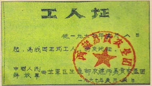 新疆生產建設兵團南下建設易貢,把標準的軍墾管理制度帶到了易貢。這是1967年西藏易貢農墾團工人證,是易貢歷史上普通百姓的第一張身份證明文件。