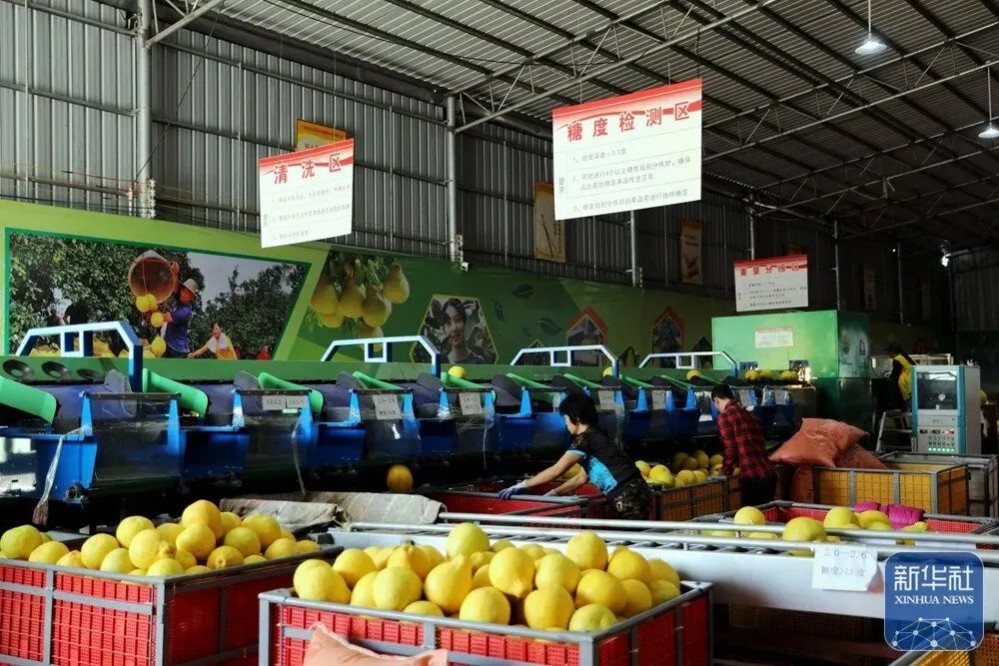 分揀與加工環(huán)節(jié)的突破,更讓沙田柚價(jià)值鏈大幅延伸。在松山鎮(zhèn),容縣田柚甄源農(nóng)業(yè)發(fā)展有限公司投資1200萬元建成廣西最大的沙田柚分揀中心,通過無損檢測(cè)生產(chǎn)線,沙田柚可實(shí)現(xiàn)清洗、風(fēng)干、農(nóng)殘檢測(cè)、糖度檢測(cè)等一條龍“體檢”,自動(dòng)分為A、B、C等級(jí)?!肮酉聵涞仡^價(jià)每斤4元左右,但經(jīng)過檢測(cè)后的A級(jí)果能賣到每斤8元或以上?!惫矩?fù)責(zé)人馬飛燕說,“通過品質(zhì)分級(jí),實(shí)現(xiàn)了市場(chǎng)分級(jí)?!爆F(xiàn)代化分揀技術(shù)的運(yùn)用,還幫助容縣沙田柚成功獲得供深及供港基地認(rèn)證,進(jìn)入高端市場(chǎng)。