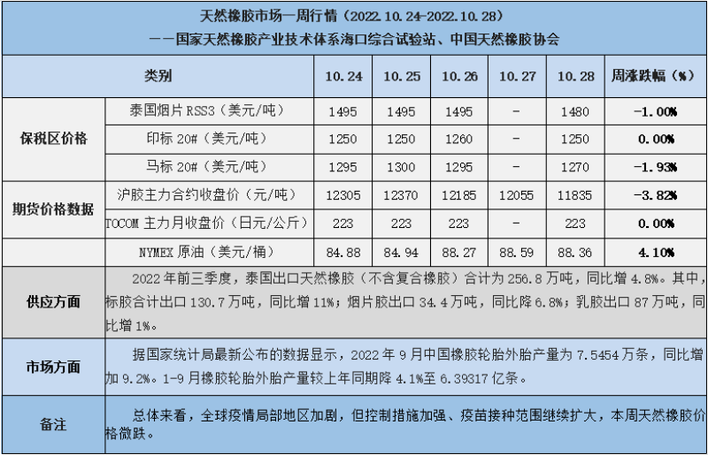 天然橡膠、大豆、玉米市場(chǎng)一周行情(2022.10.24-10.28)
