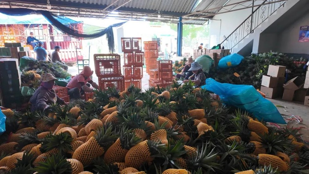 更可喜的是,蓬勃發(fā)展的鳳梨產(chǎn)業(yè)為當(dāng)?shù)卮迕駝?chuàng)造了大量就業(yè)機會。在采收旺季,周邊村民紛紛加入采摘、分揀、包裝等工作隊伍,日收入達(dá)幾百元,真正實現(xiàn)了“家門口就業(yè)”的夢想。