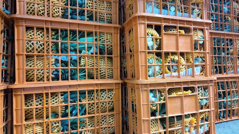 “我們的鳳梨在市場上非常暢銷,每天‘線上+線下’要發(fā)20噸左右,我身后的這輛車就是馬上要發(fā)往貴州的?!焙献魃缲?fù)責(zé)人蔣紅艷說。