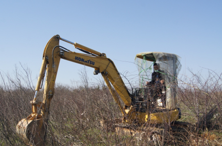 疫情期間桑海集團農(nóng)業(yè)分場探索使用小型挖掘機為掌葉覆盆子除草