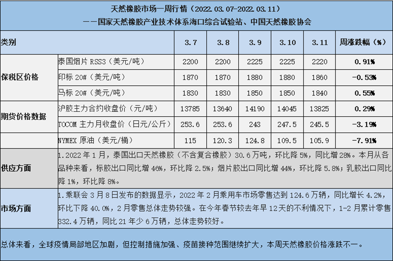 天然橡膠、大豆、玉米市場一周行情(2022.03.07-03.11)