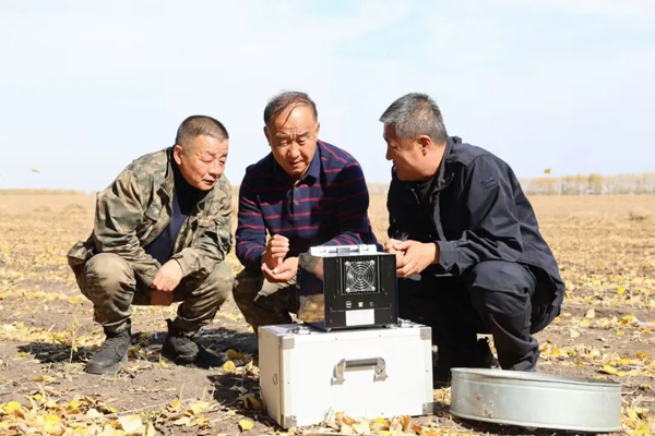 長水河農(nóng)場技術(shù)人員測量墾地托管地塊大豆水分和蛋白含量。劉曉巖 攝