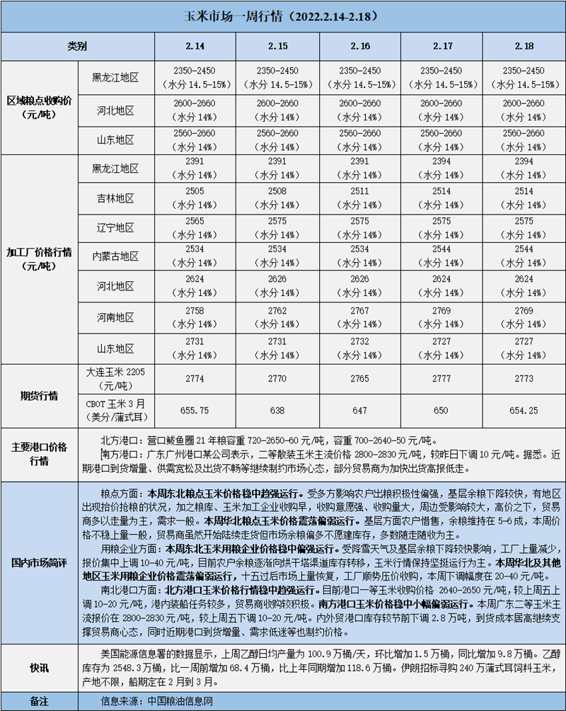 天然橡膠、大豆、玉米市場(chǎng)一周行情(2022.02.14-02.18)