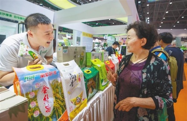 一位消費(fèi)者正在購買海墾品牌的農(nóng)產(chǎn)品。袁琛 攝