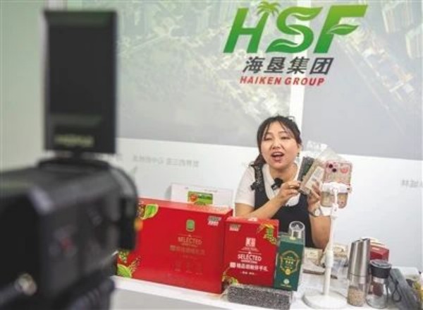 主播通過帶貨的方式宣傳推介海南農(nóng)墾農(nóng)產(chǎn)品品牌。袁琛 攝