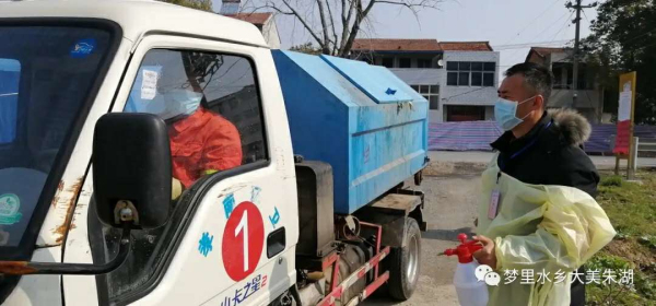 2月22日上午10點(diǎn),一輛垃圾車(chē)緩緩?fù)T诳c(diǎn),“你的體溫正常。你拉的是垃圾,要搞好消毒,開(kāi)車(chē)也一定要戴口罩,不能麻痹大意?!笨c(diǎn)值守人員、朱湖財(cái)政所長(zhǎng)魏志偉并沒(méi)有因?yàn)橛龅绞烀婵锥粢暂p心,他一邊噴灑消毒,一邊溫馨提醒著駕駛員。