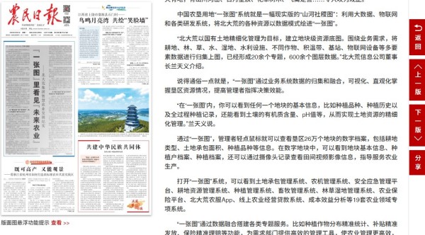 探索建設中國農墾用地“一張圖”,獲部領導充分肯定,農民日報宣傳報道相關應用情況和成果。