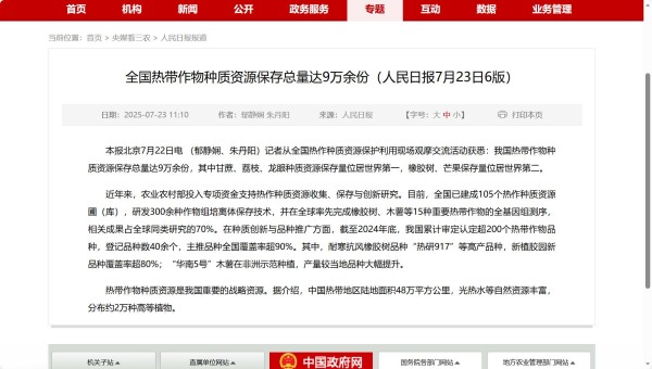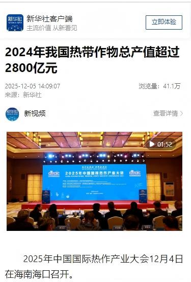 農墾中心與海南省農墾投資控股集團共同主辦2025年中國國際熱作產業(yè)大會,人民日報、新華社、農民日報等媒體宣傳報道。