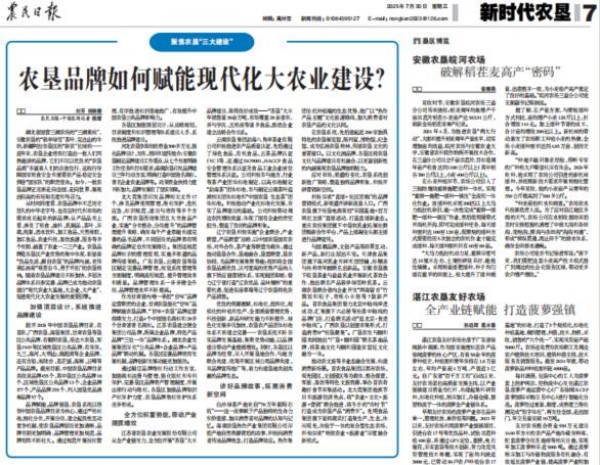 在農民日報發(fā)表《農墾品牌如何賦能現(xiàn)代化大農業(yè)建設?》。