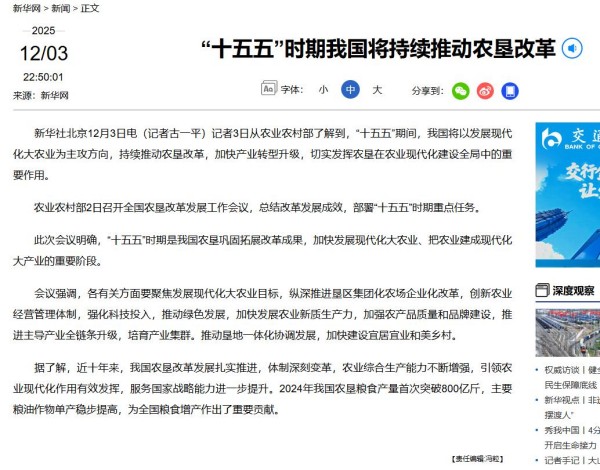 協(xié)助組織全國農墾改革發(fā)展工作會議,部署“十五五”時期重點任務,新華社報道。