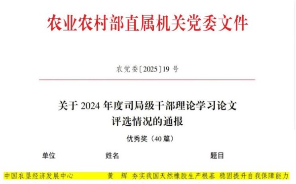 黃輝同志獲得2024年度司局級干部理論學習論文優(yōu)秀獎。