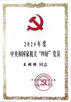 王盼盼同志獲得2024年度中央和國家機關四好黨員。