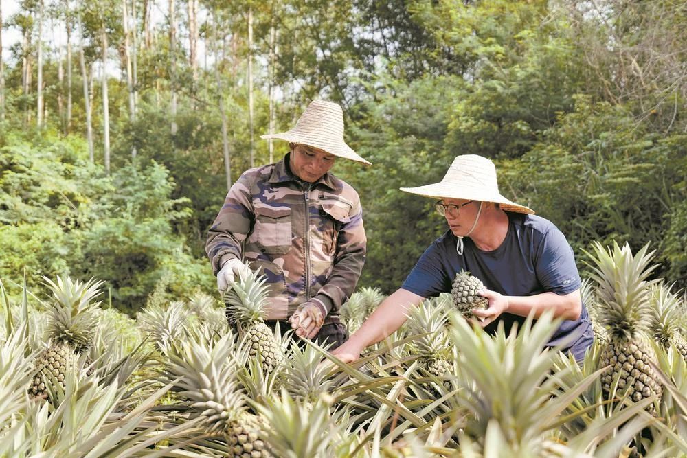 “我們種植的這款鳳梨品種優(yōu)良,經(jīng)過(guò)科學(xué)管理、不噴灑農(nóng)藥,長(zhǎng)勢(shì)好,個(gè)大且甜。目前市場(chǎng)上的售價(jià)大約在7元/斤,還沒(méi)采收完就已經(jīng)有客商上門(mén)預(yù)訂?!绷栝L(zhǎng)恩笑著說(shuō)。