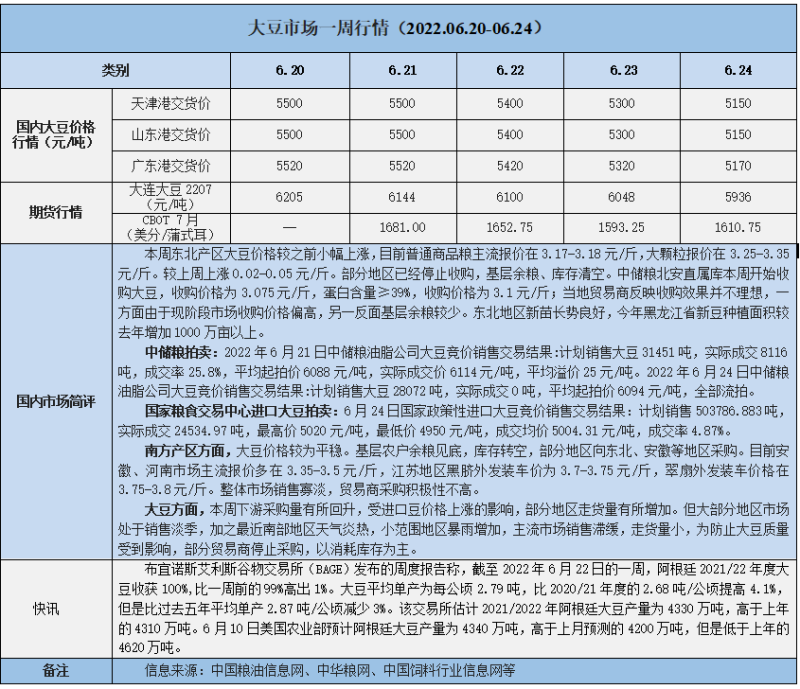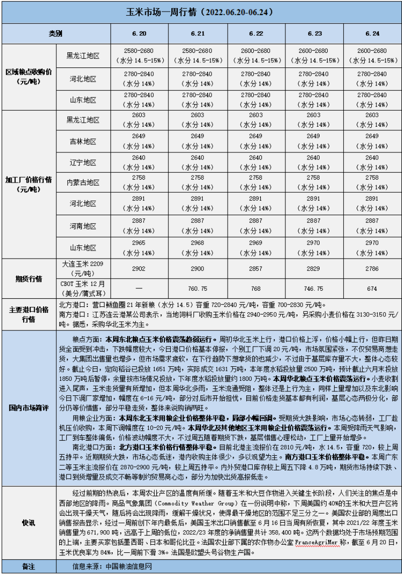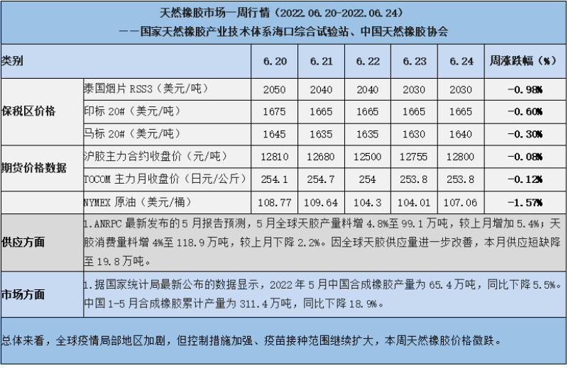 天然橡膠、大豆、玉米市場一周行情(2022.06.20-06.24)