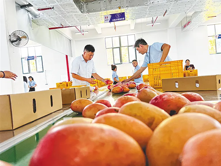 工作人員在打包芒果。海南日報全媒體記者 袁琛 攝