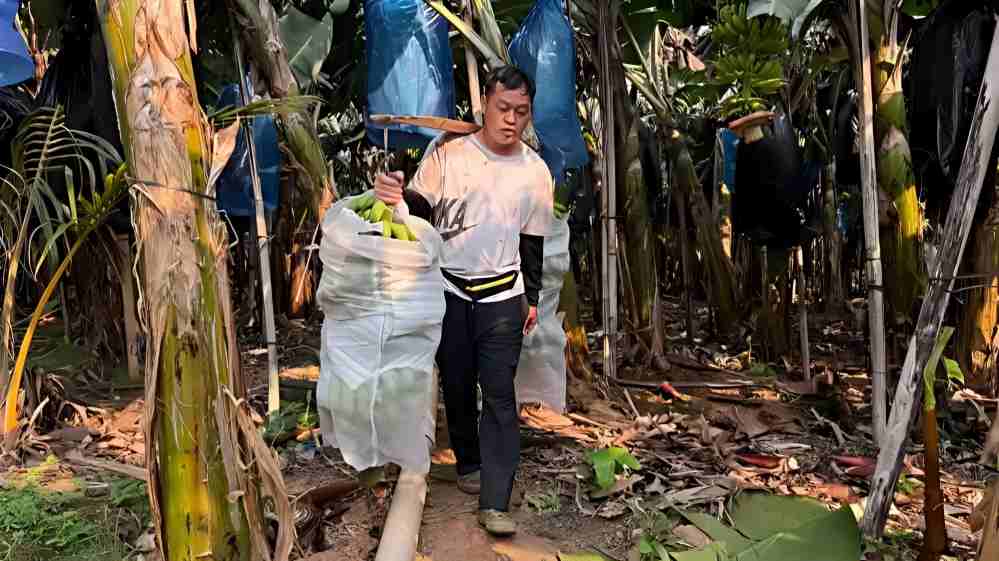 據(jù)了解,十月田鎮(zhèn)是昌江香蕉的主產(chǎn)鄉(xiāng)鎮(zhèn),已有20多年種植歷史。近年來,該鎮(zhèn)依托優(yōu)質(zhì)農(nóng)業(yè)資源,大力發(fā)展香蕉種植產(chǎn)業(yè),持續(xù)拓寬銷售渠道,逐步探索出一條產(chǎn)業(yè)富民、鄉(xiāng)村振興的新路徑。今年全鎮(zhèn)香蕉種植面積達(dá)1.6萬余畝,采收期將持續(xù)至7月,預(yù)計(jì)總產(chǎn)量超4.8萬噸。采收旺季用工需求大幅增加,周邊村民得以在家門口務(wù)工掙錢,實(shí)現(xiàn)顧家與增收兩不誤。